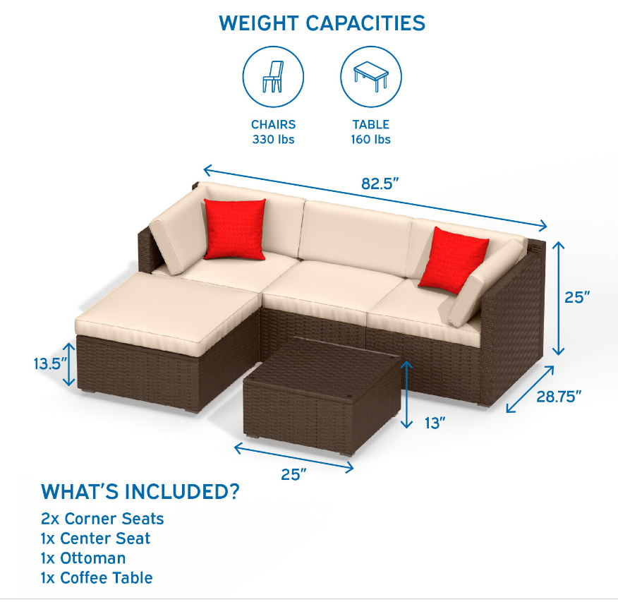 5 Piece Patio Furniture Set by Nestl- Outdoor Patio Set, Couch, Chairs and Table