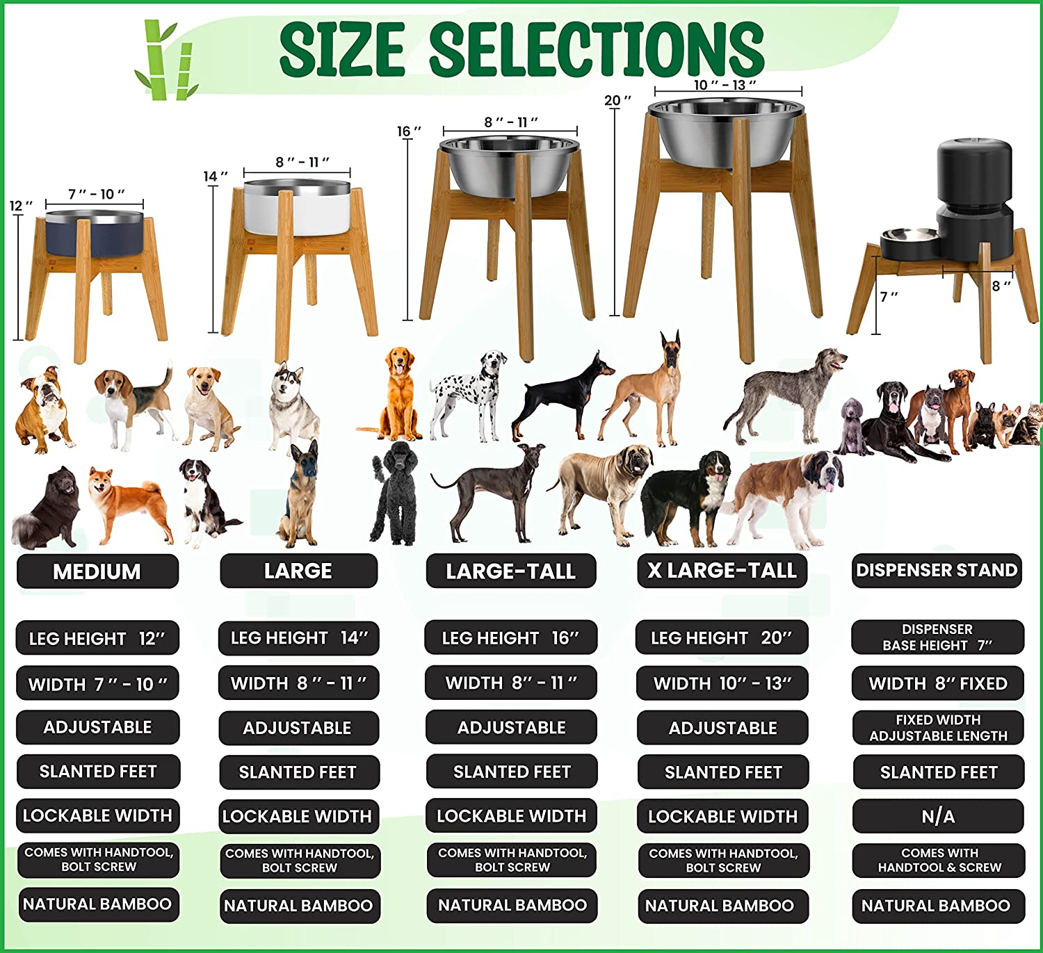 Dog Bowl Stand for Large Dogs - Height 14-Inch, Adjustable, Lockable Width