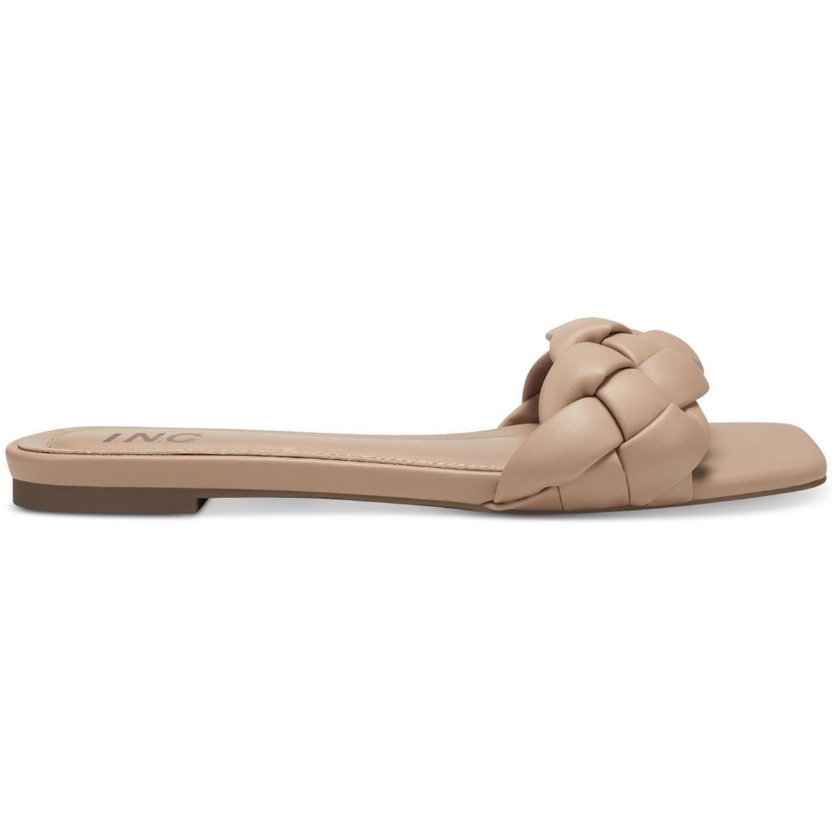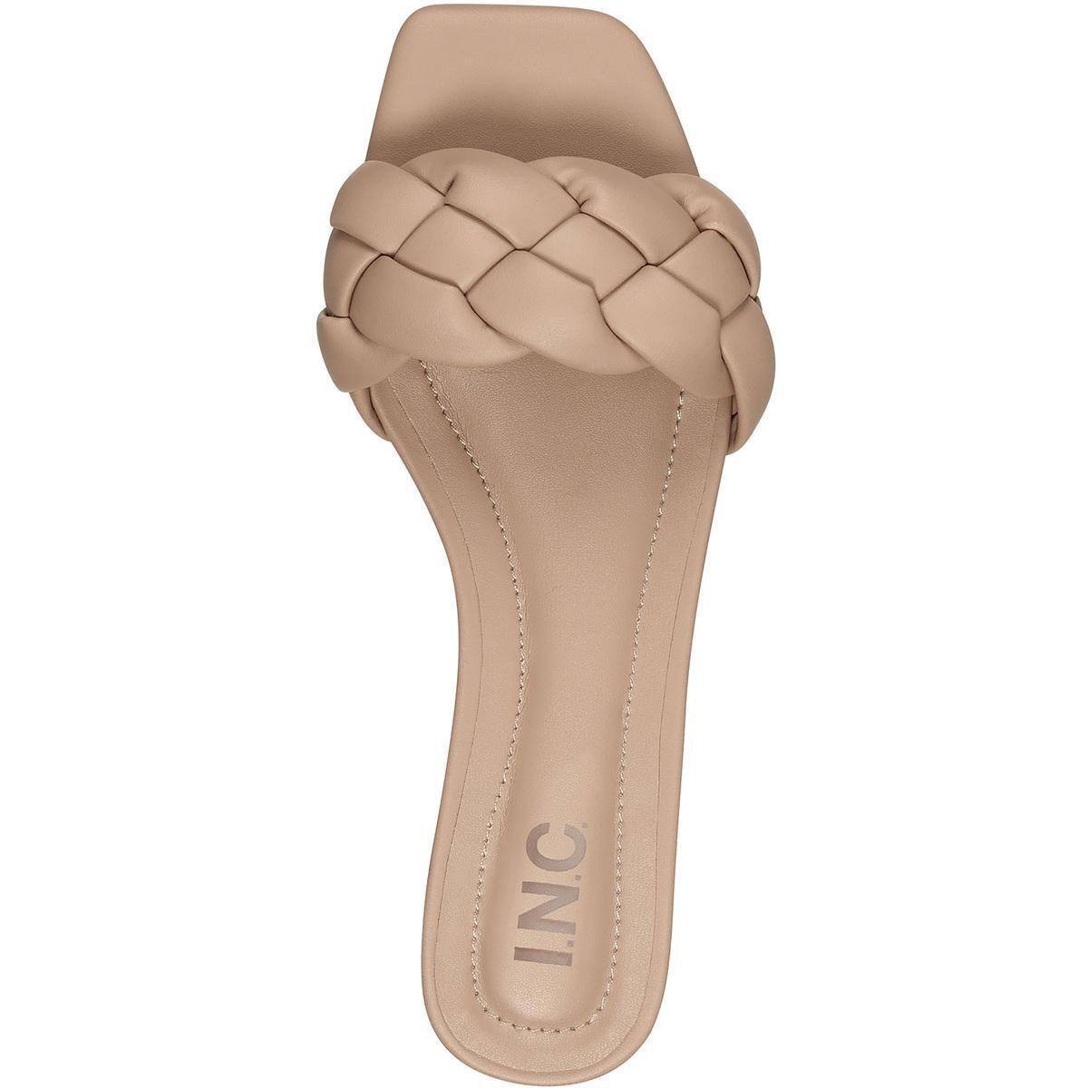 INC Womens Partee Faux Leather Slip On Braided Slide Sandals Shoes BHFO 0292
