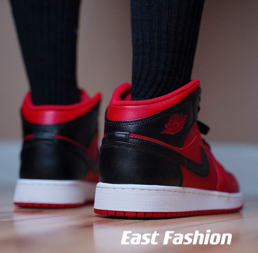Nike Air Jordan 1 Mid Reverse Bred 554724-660 Men's & GS Sizes