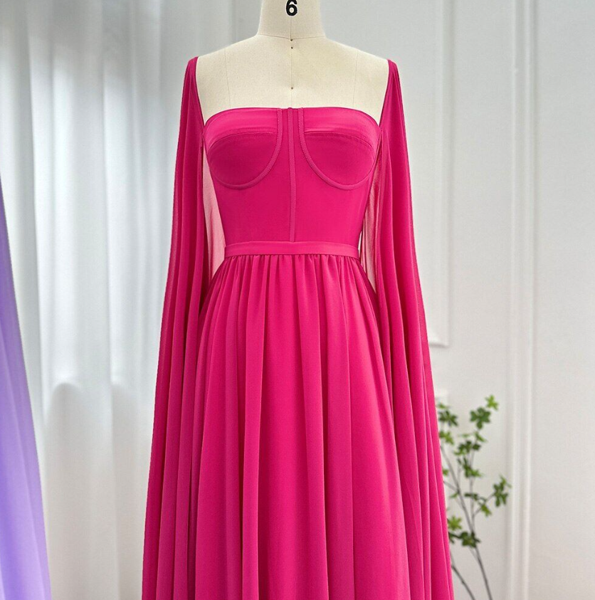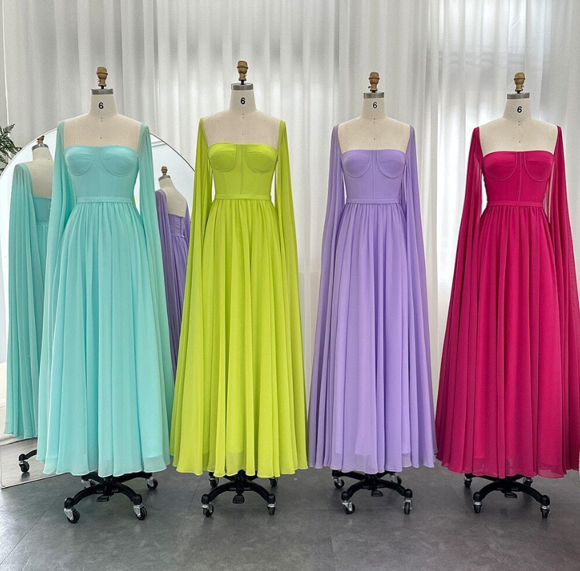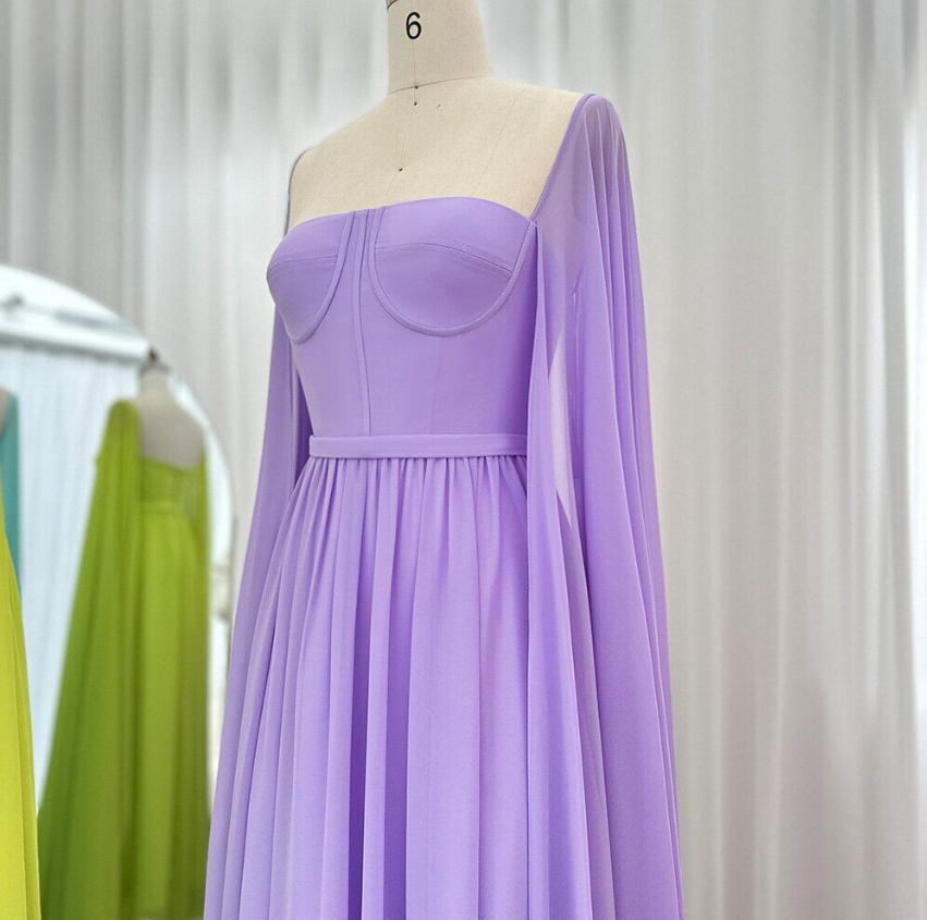 Saudi Arabic Lemon Yellow Dubai Evening Dresses Cape Sleeves Elegant Party Gowns