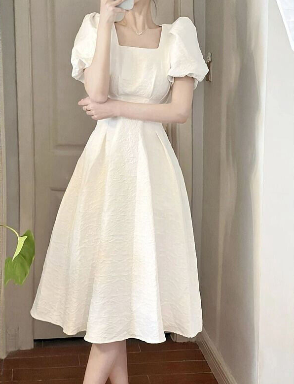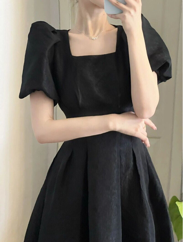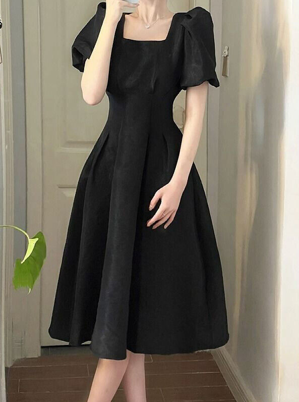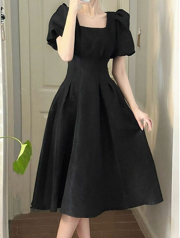* Item:Womens Elegant Square Short Neck Puff Sleeves Slim Fit Summer Party Midi Dress